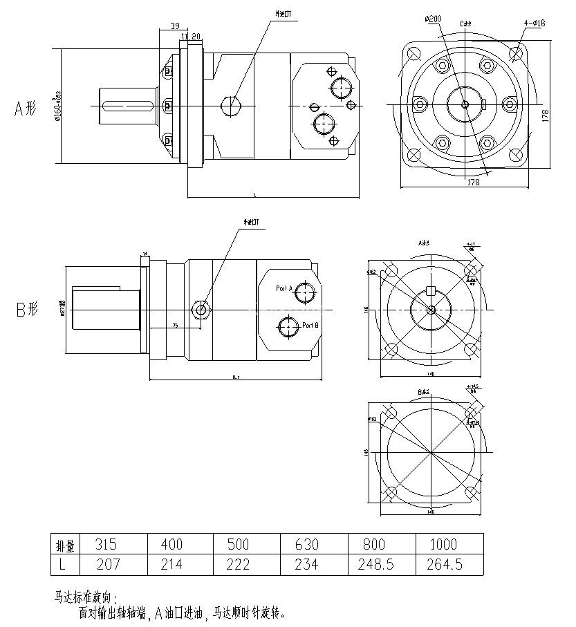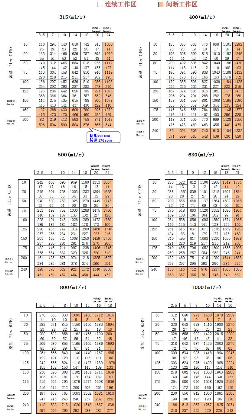 排量(ml/r) | 315 | 400 | 500 | 630 | 800 | 1000 | |